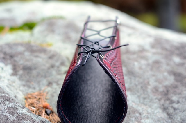 This is the first archery armguard I’ve crafted. It’s simply tooled with a basketweave pattern, lined with soft pigskin, saddle stitched along the edges, and is adjustable with the leather laces.